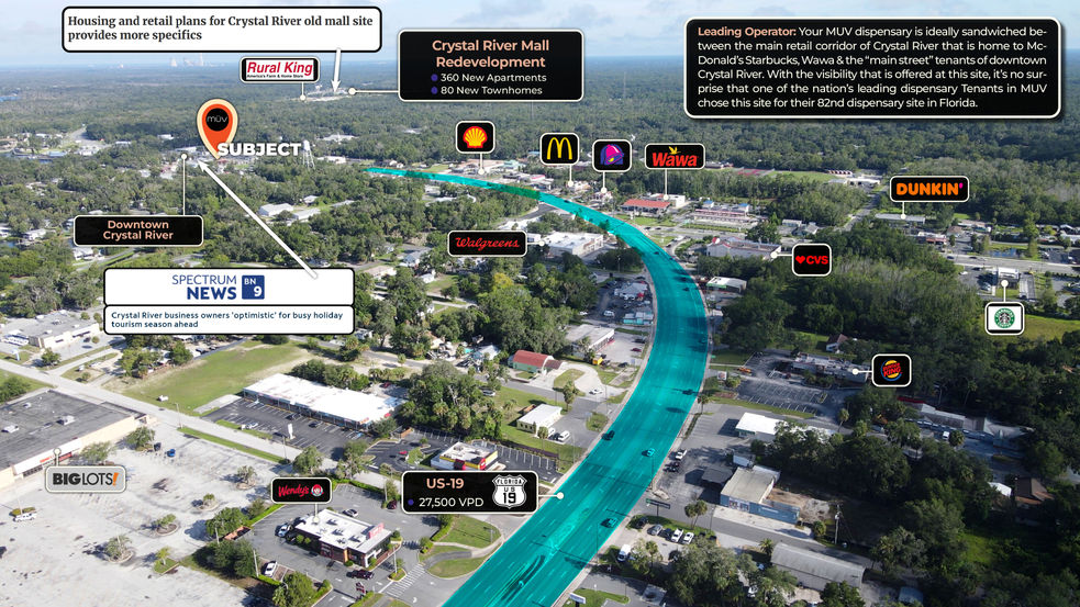 Tourism Hub & Ideal Demographic: Crystal River is known for several unique attractions most notably its eco-tourism. This feature entices retirees to make Crystal River home and benefits MUV as the Fla. retiree population happens to be large consumers of cannabis.