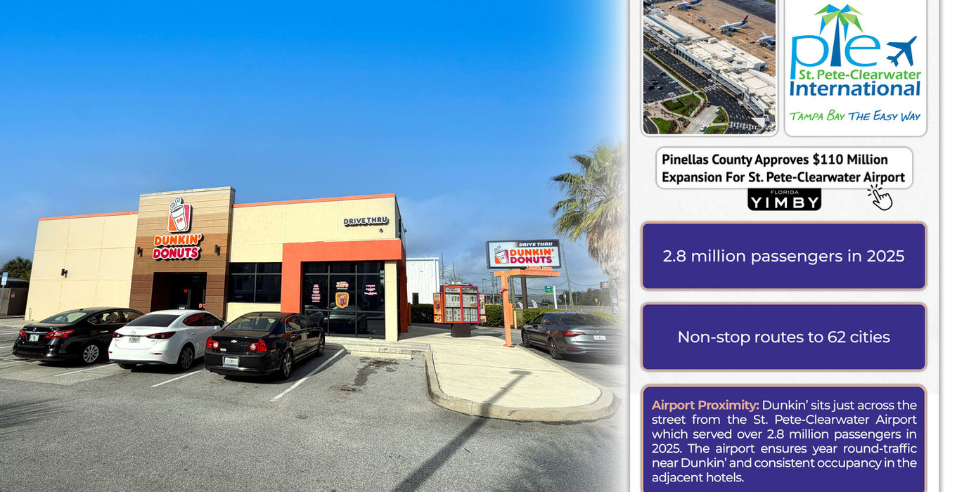 St. Pete–Clearwater International Airport: Dunkin’ is right across the street from 2.8 million annual passengers.
